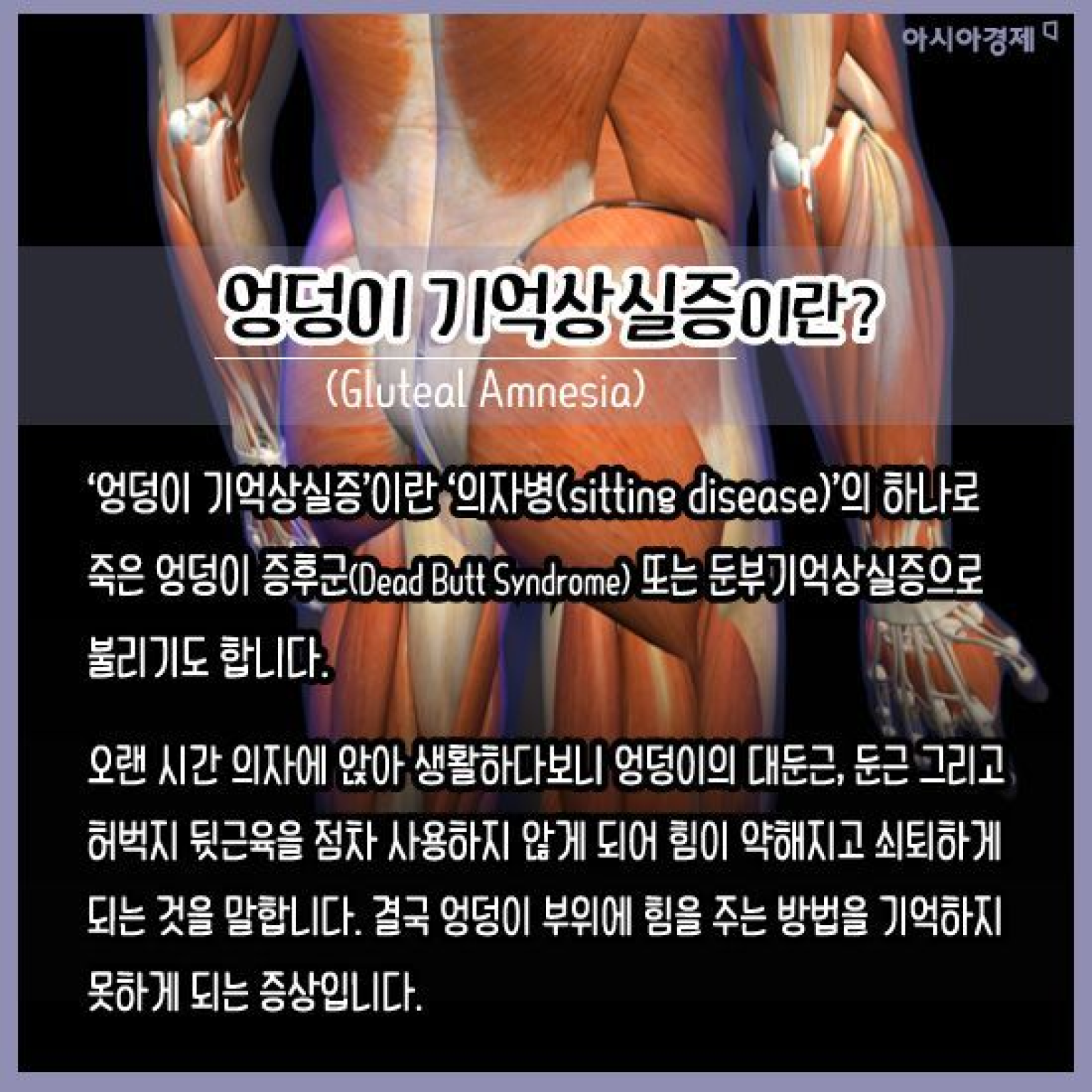 엉덩이 기억상실증이라는 것이였다 ! 이거를 '기억'과 연결시켜 오랜 시간 의자에 앉아있는 현대인들을 위해 허벅지, 엉덩이 근육을 풀어줄 수 있는 앱을 만들자 로 시작했다.